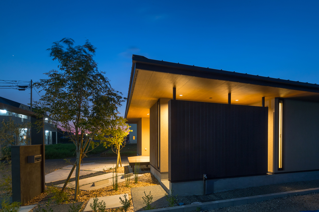 四季折々の美しい風景を楽しめるように庭は和風の植物を多く取り入れ、モダンでおしゃれな平屋が完成しました。
